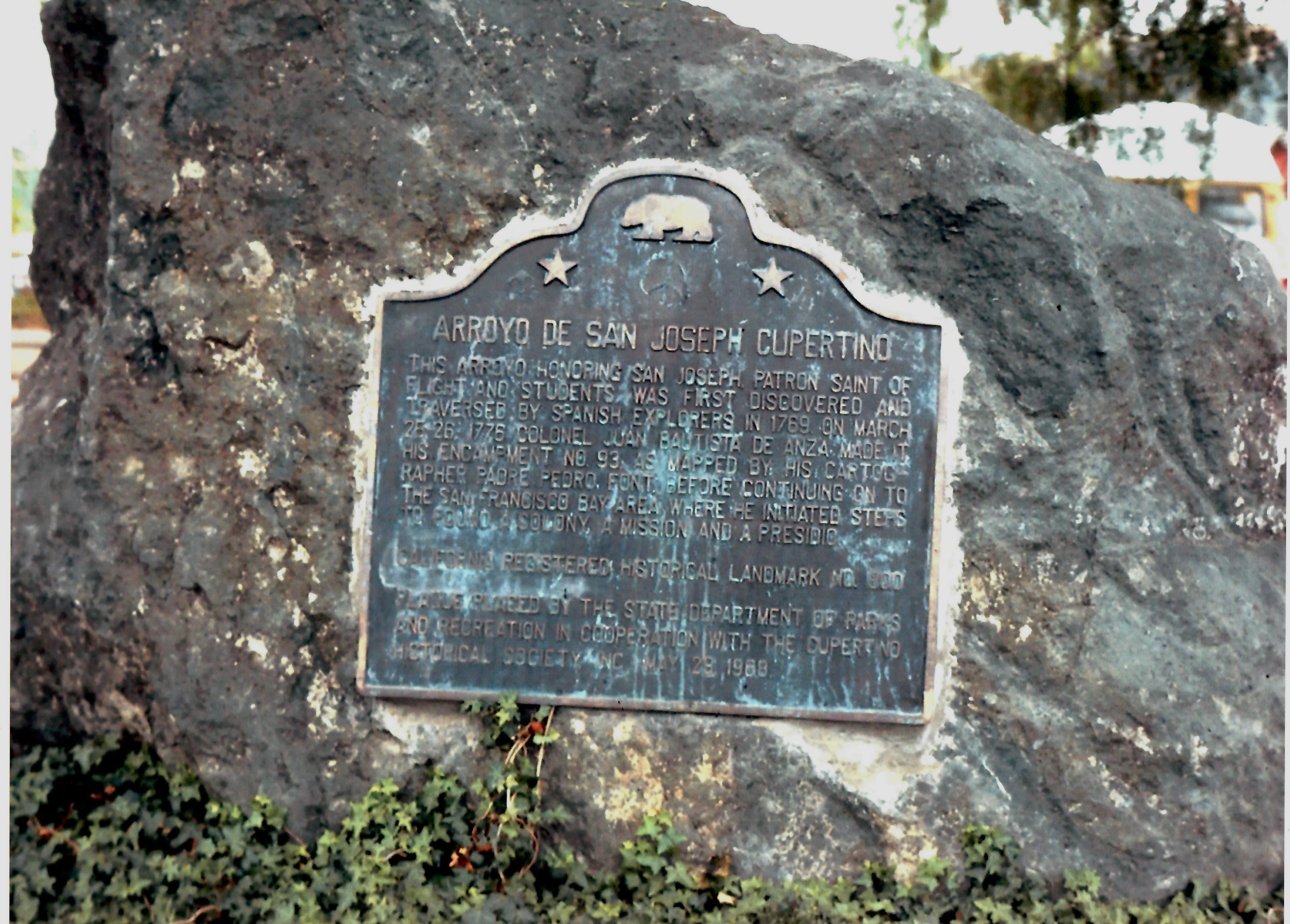 And so it was on March 25, 1776, that De Anza encamped on the banks of Stevens Creek, which Font named the Arroyo de San Josef Cupertino. Over a century later, Cupertino would become the name of our city.